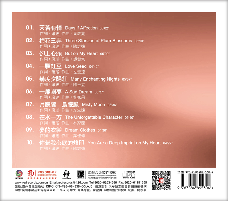 這是一張由臺灣著名的『音樂教父』陳彼得先生親自做音樂總監打造的HIFI女聲。作為音樂星空中堅持燃燒的星宿『陳彼得』,是臺灣大名鼎鼎重量級音樂人,上世紀七八十年代創作過大量以瓊瑤劇為題材的音樂歌曲:如『遲到』、『一剪梅』、『阿裏巴巴』、『一條路』等等膾炙人口的歌曲:500多首流行歌曲的創作量,奠定了他比羅大佑、李宗盛等更早、更堅實的音樂江湖地位。他的音樂寫意地述說著流金歲月和人生情懷,曾帶給幾代人的強烈震撼。